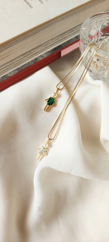 O colar filhos é composto por uma pérola super delicada e o cristal central, sendo em formato triangular referente à uma menina e o retangular à um menino. Escolha seu banho favorito, a cor da pedra que você mais ama e leve suas eternas crianças sempre com você.